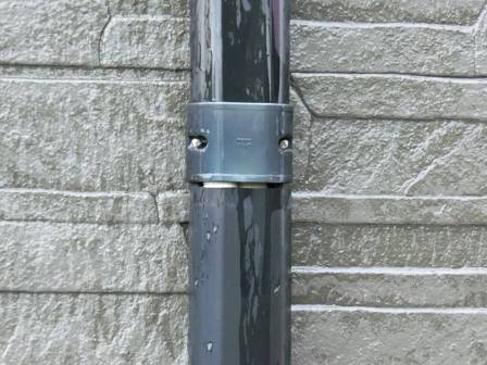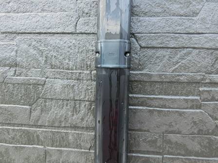【スリムダクトの下がり】2013年12月14日(土)お家の点検2年目(高岡市O邸) 2014.02.28 スリムダクトが少し下がっているのを発見。 [建物左面/西側] 手で押し上げて隙間をふさぎました。スリムダクトは室外機から室内機に伸びる配管を太陽の紫外線による劣化等から保護しています。