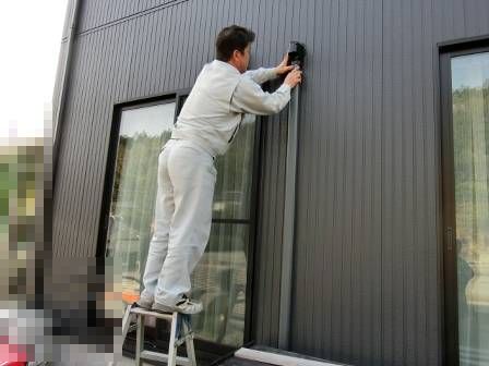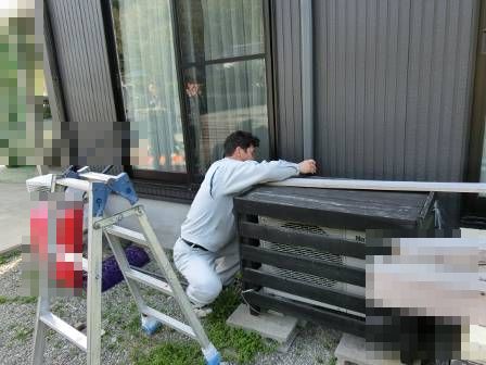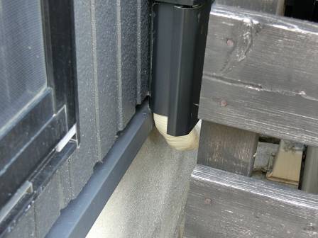 また、下のほうもズレがあったので、下から押し上げてバランスを整えました。スリムダクトの内部にあるダクトホースが紫外線によって劣化するのを防いでいます。