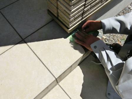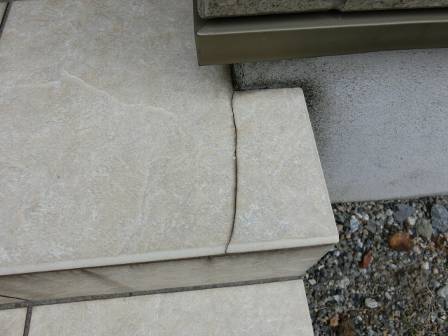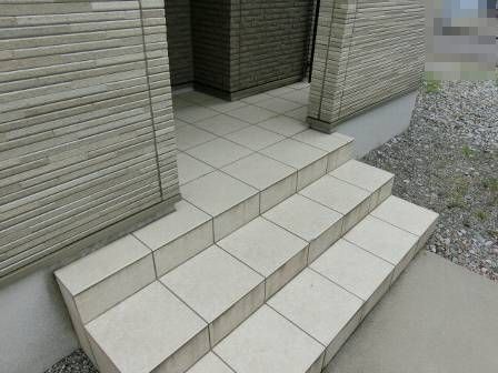 施工方法について。正方形のタイルの一部を削って(切り取り)加工することは仕上がりが美しいのですが、経年変化・耐久性を考えると強度を弱くする原因にもなります。目地を入れたり、施工方法を工夫する等で荷重を逃がすことも必要かと思われますが、実際には難しいんでしょうね・・・。