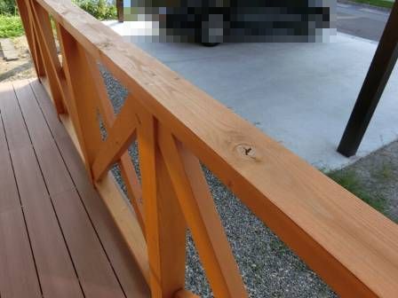 また、定期的な塗装をすることで木の色合いや美しさ・強度等が保たれます。北面で屋根の下に手すりがあるので経年劣化等の進度は遅くなりますが、起こり得る現象を想定して頂くようお願いしました。
