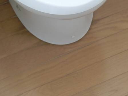 【トイレの床の変色】2014年5月16日(金)お家の点検10年目(富山市M邸) 2014.06.18 1階、2階ともに複層フローリング仕様となっています。1階では結露水による床の変色現象がありました。 [1階] 便器は冷たいので梅雨や冬は結露が発生しやすい時期。換気扇を回すことで「上への排気とドアの下から給気」になることで空気が循環すると結露現象も少しは改善すると思われます。 床材が木の場合は起こり得る現象ですが、水に強い(汚れには弱いですが)クッションフロアの採用も選択肢としてあります。 変色現象は特に見受けられませんでした。 [2階]