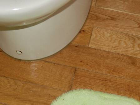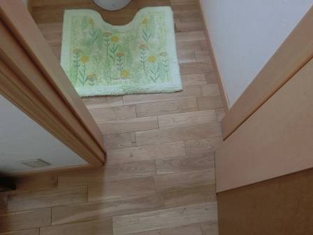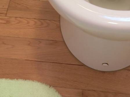 【トイレの床材】2014年6月21日(土)お家の点検10年目(砺波市M邸) 2015.03.06 床材は木製のフローリング仕様です。写真写りが少し違っていますが、日々のメンテナンス・お掃除は念入りにされているご様子。木製の場合は風合い・質感がビニール製のクッションフロアよりも秀でていますが、便器やトイレタンクの表面に発生する結露水には弱く、変色することもあります。 5年目点検当時は起こり得る変色現象やメンテナンス方法を助言していたのですが、お客様はシッカリと覚えておられ、結露による床材の変色には常に気を配っているご様子。