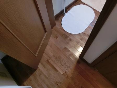 【トイレの床材にワックス】2014年7月16日(水)お家の点検10年目(富山市八尾町A邸) 2015.03.06 木肌が美しい木製のフローリング仕様。汚れには強いのですが、水には弱い性質があります。 ワックスを定期的にかけておられるせいか、結露水による床材の変色現象は見受けられませんでした。ワックスではリンレイが有名ですが、耐水性もアップしているので使い勝手が良いかもしれません。 [左側] [右側]