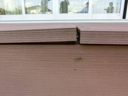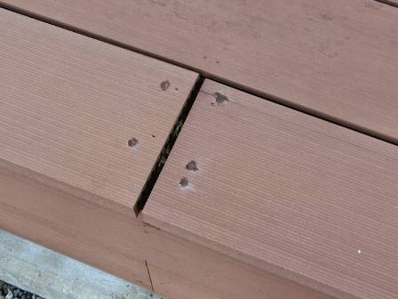 テラスの板が浮いてしまっている。伸縮等の影響が少ない素材を選んだと思ったが・・・。