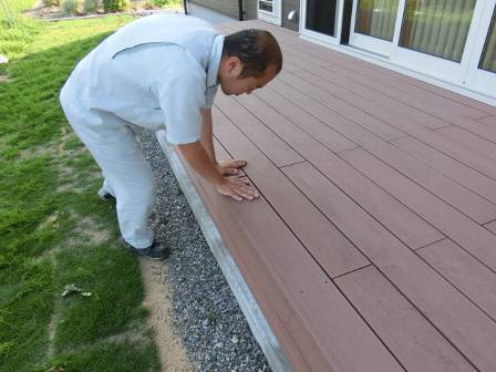 【樹脂木(木材・プラスチック再生複合材)の浮き】2014年6月24日(火)お家の点検1年目(富山市婦中町M邸)