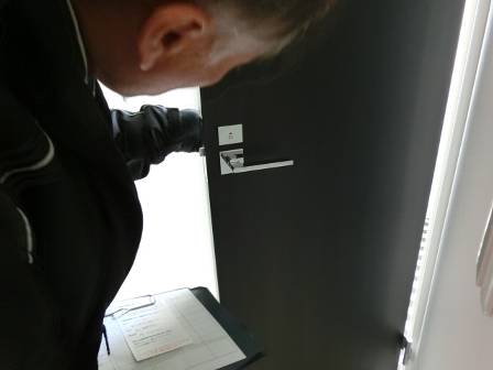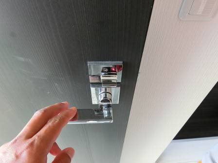 【ロックされる角度が違う】2013年11月27日(水)お家の点検1年目(富山市婦中町D邸) 2014.02.27 Q ドアをロックする場合、普通は「縦が開く、横が閉まる」感覚であるが、2階は「横向きで開く、1階は縦向きで開く」となっている。 [1階トイレ] 現状を確認。2階トイレの「閉まる/ロック」を縦から横向きにすることにしました。 ロック金具を解体して向きを「横向き」ロックに補正。 今回は横向きでロック状態に補正しましたが、室内ドアの一般的なロックの向きは地域・場所等によって違うこともあると思います。