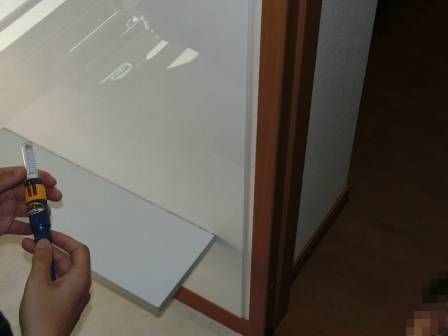 A 現状を確認。「下地探し器」で下地材が打ってある部分に対して正確にビス打ちさせているかを確認しましたが、適正に施工されている状態。