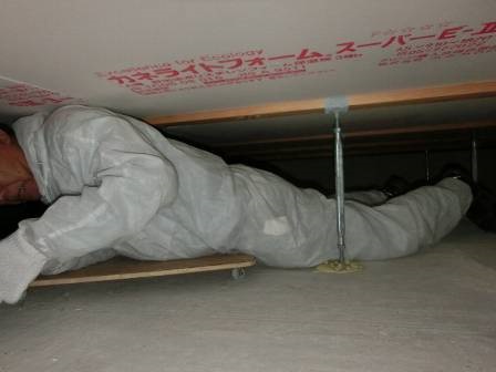 【以前に床鳴りがあった】2015年7月4日(土)お家の点検2年目(富山市N邸) 2016.02.19 以前に床鳴りがあったようですが、今回の点検で該当箇所を踏み込んで検査しましたが、現象は見受けられませんでした。床材や構造材が木製なので天候等の湿度変化によって伸縮する影響で床鳴りが発生しているものと思われます。後日、床鳴りが確認されたら連絡して頂くようお願いしました。