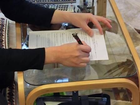 お客様に住み心地アンケートの記入をお願いしました。