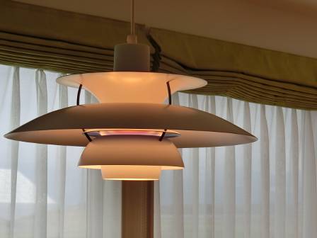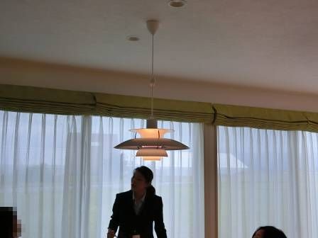 この照明はデザインで選んだのであるが、明かりが暗かったとのこと。明るさはサンプルを見ても設置場所や時間帯、目の感度等によって、光の感じ方が違ってくると思われます。
