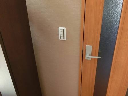 「洗面脱衣室の入口にLDKの照明スイッチを付けたが不要だった」とお客様。玄関からLDKに入る際のスイッチは日常的に使われると思いますが、洗面脱衣室の照明が点灯している時にLDKが消えているというのはほとんど無かったようですね。
