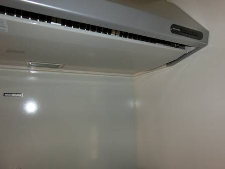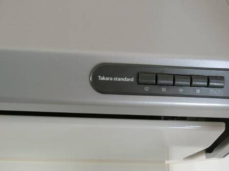 「換気扇のお掃除・メンテナンスがしやすい」と奥様の好評。永原が提案したタカラスタンダード製の換気フードとなっています。