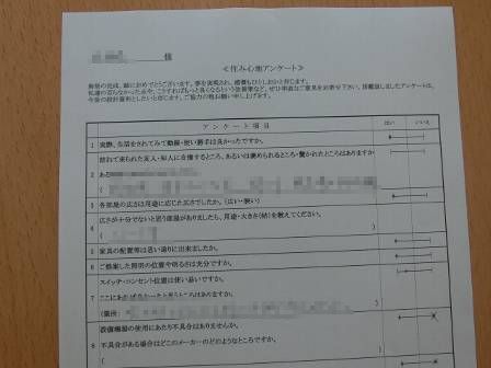 お客様に住み心地アンケートの記入をお願いしました。