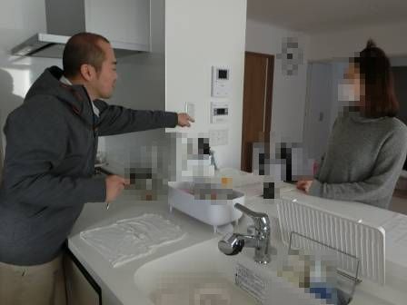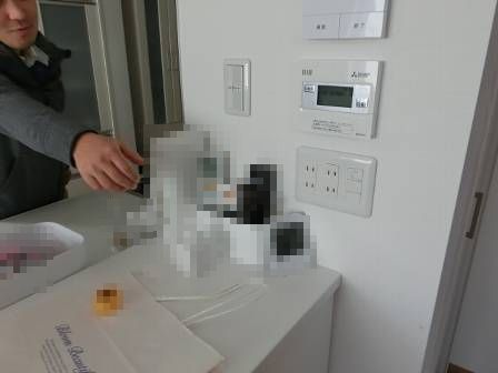Q キッチン側で電化製品(ミキサー)を使う時、コンセントが遠くて手を伸ばしている。
