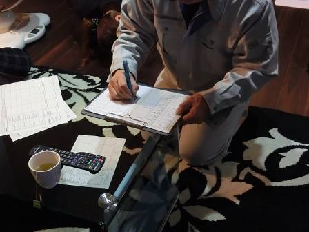 さて、弊社の定期点検は直接お客様宅に伺う訪問点検です。実際にお客様の前で確認・補修作業等、最後にはお客様の同意を得た署名を頂いて点検終了となります。お客様の確認を得ながら点検・補修作業を進めていくのは「アフターフォローの工程報告」とも言えるかもしれません。