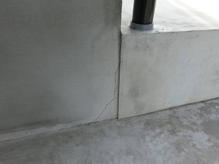 基礎本体の表面に施してある薄い化粧モルタルのヒビ割れ現象。お客様の感想・見た目では内部までヒビが入っているかも?と心配しておられたご様子。今回の現象は表面上だけのものであり、基礎本体にまでは影響はありません。温度変化によるモルタルの収縮や雑土間が自重で少し下がることによって表面の数ミリの化粧モルタルが少し動いたものと思われます。