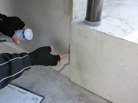 シーリング剤を少し指先につけてヒビ割れ部分に塗りこみます。雨水が進入して凍結による体積膨張(1.1倍)凍結融解の繰り返しによる更なるヒビ割れの拡大を防ぐ目的があります。