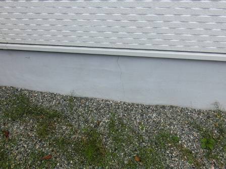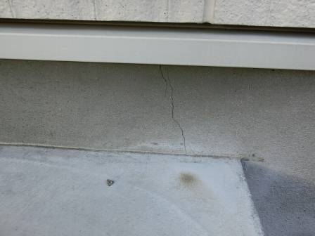 【基礎化粧モルタルのヒビ割れ】2013年11月18日(月)お家の点検1年目(富山市T邸) 2014.02.27 基礎肌を隠す為に基礎本体の表面に施してある薄い化粧モルタル。施工の厚さが薄いせいか温度変化によって小さなヒビ割れが入ることがあります。基礎の強度には特に問題はありません。 [建物左面/北側] 補修方法はヒビ割れ箇所に粒子の細かなモルタルの上塗りとなります。補修しても補修跡が目立つ事例もあるので、お客様との協議の結果、今回は2年目点検まで様子を見ることになりました。 [建物右面/南側]