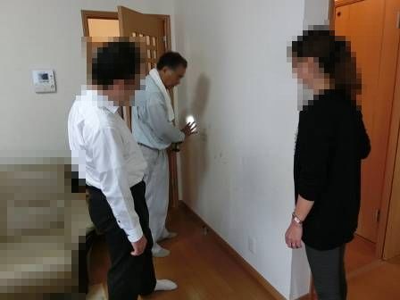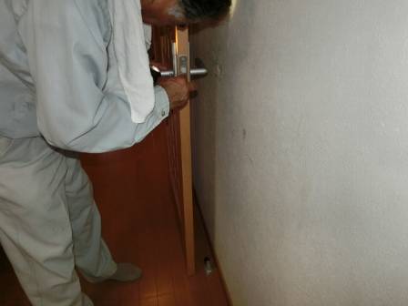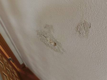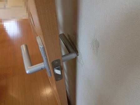 【壁クロスの破れ】2016年10月18日(火)お家の点検10年目(富山市I邸) 2016.12.27 Q ヤンチャな子供たちが開き戸を思いっきり開けることの繰り返し。壁クロスに穴が開いた。 A 現状を確認。壁クロスの貼り替えを希望される場合は、範囲を決めて数万円で対応できること、穴の開いた部分は貫通していないのでパテ処理で済むと思われます。 [LDK] 開き戸のノブが緩んでいるのを発見。ドライバーで根元のビスを増し締め。