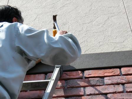 【外壁の釘の出が気になる】2015年4月29日(水)お家の点検5年目(富山市S邸) 2016.02.18 Q 外壁から釘が出ているのが気になる。 現状を確認。ハンマーで増し打ちすることになりました。経年劣化等によって幕板を留めている釘が少しずつ出てきたものと思われます。 [建物前面/南側] ハンマーで増し打ちを実施。お客様にも見て頂くことで、今回の点検スタッフによる対処が今後のお客様ご自身でするメンテナンスのお手本になると思っています。