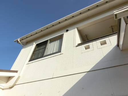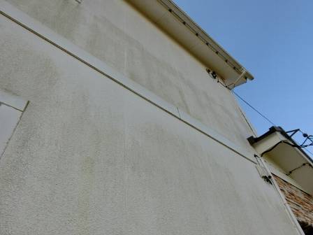 外壁の表面を試しに手で擦ってみると、指先に白い塗料の粒子が付着しました。新築当時の塗装は汚れが付きにくい「ブリードプライマ」を採用していましたが、約10年が経過して塗装が太陽の紫外線等によって劣化したものと思われます。お客様も劣化については理解されていました。