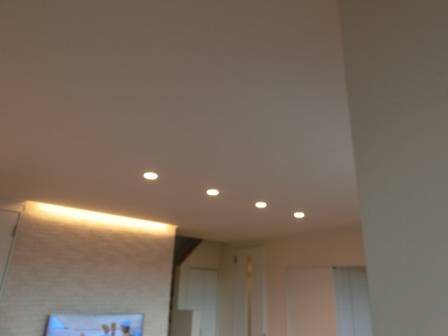 天井を照らす太陽の自然光と照明器具による光・間接光等の違いがあります。光の差し方などによって見え方は異なりますが、照明を点けると天井クロスに線が入って見える現象については施工上の起こり得る現象として対処しているのですが、難しさもあります。クロスの種類(柄や厚さ)によっては見えにくくなる事例もあるようです。