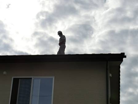【屋根点検】2014年11月6日(木)お家の点検2年目(富山市K邸) 2015.07.31 屋根点検を実施。特に異常はありません。 [建物後面/南側] お客様にデジカメ画像で屋根瓦の状態を確認して頂きました。