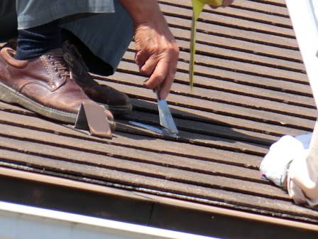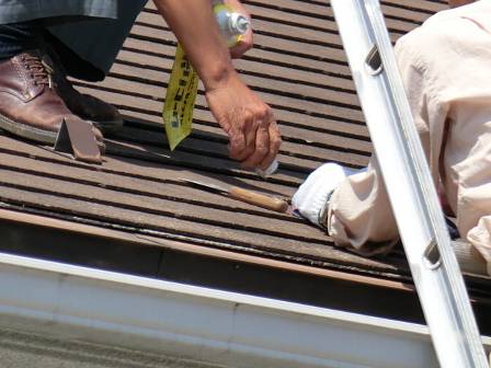 屋根は遠目でしか見えないので、周囲に養生テープを貼らない・仕上げの美しさを度外視するのをお客様に了解して頂き補修しました。ありがとうございます。