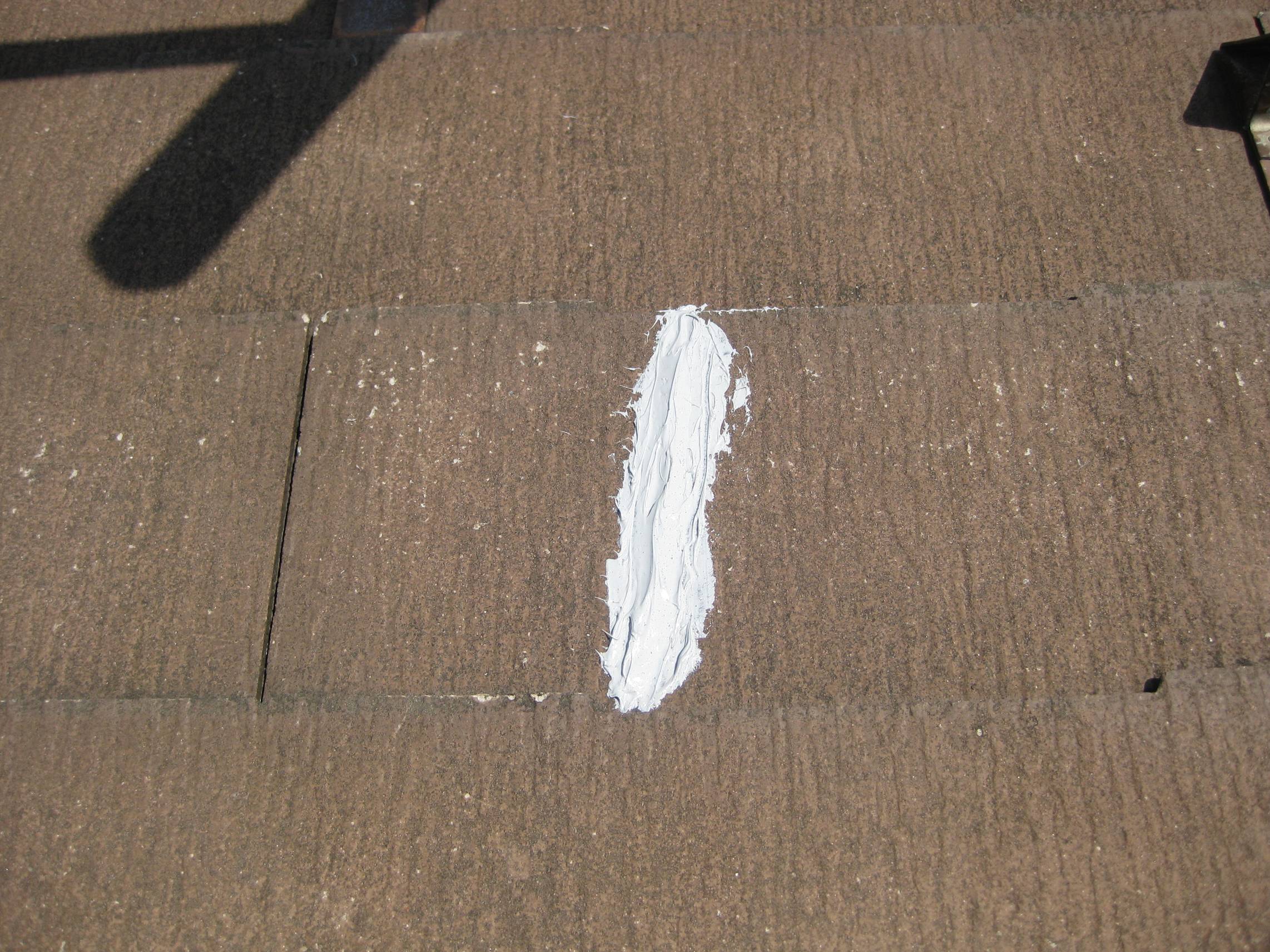 コロニアルの1枚にヒビが入っているのを発見。応急処置としてお客様の目の前でシーリング剤を充填。