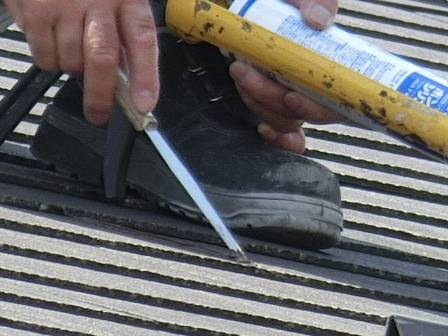 シーリングを打ち込んだ後はヘラを使って均しています。