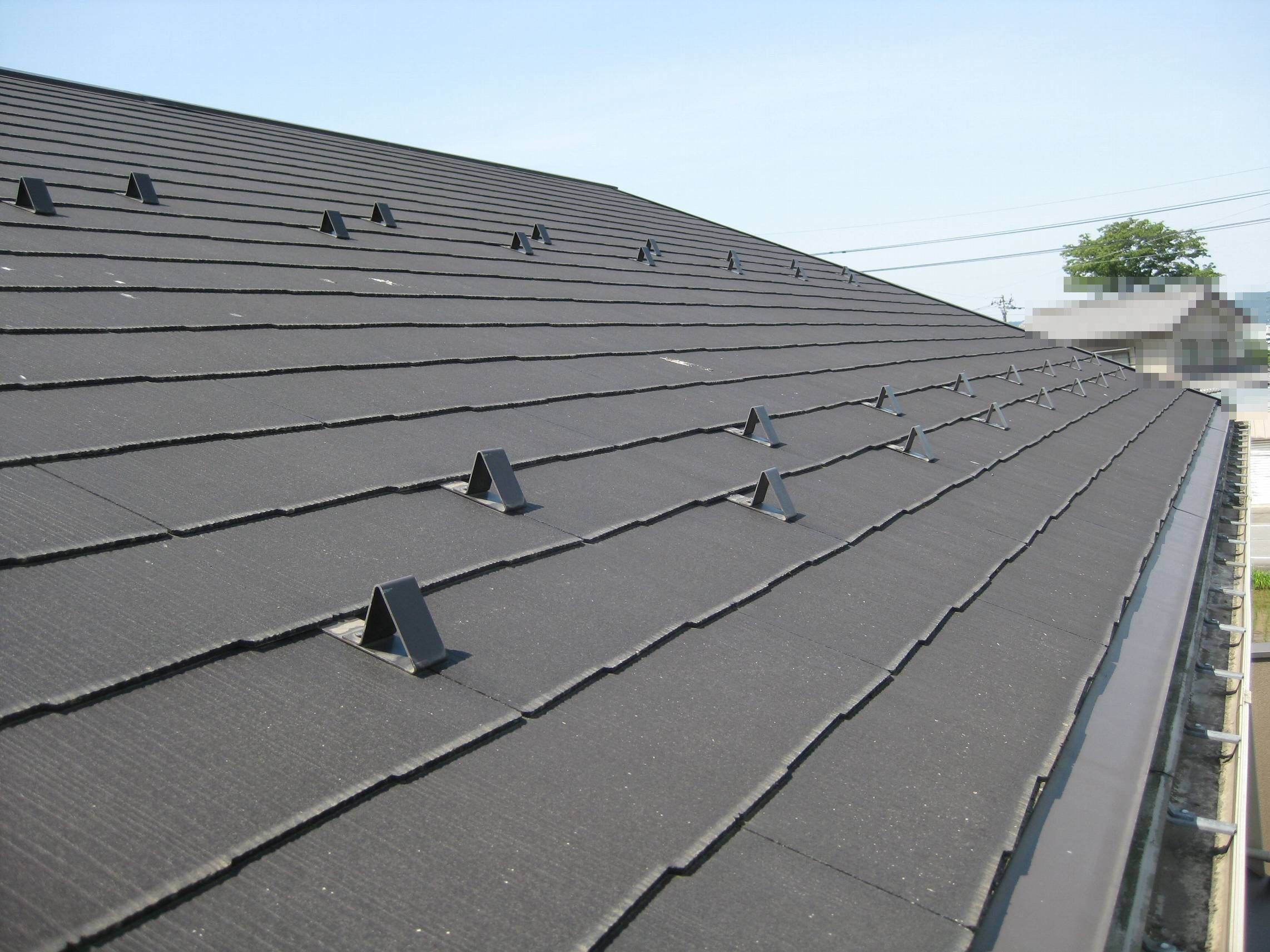屋根材はコロニアル(セメント系)仕様。北側の屋根材にヒビ割れが比較的多くありました。屋根雪の落下等の自然環境によるものと思われます。