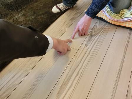 【床のキズ】2013年11月16日(土)お家の点検1年目(高岡市O邸) 2014.02.26 Q 釘のように尖ったもので削ったのか記憶に無いが、キズを付けてしまった。何か良い補修方法は? A 現状を確認。補修用クレヨン等で埋めてみることをオススメしました。今回はご提案だけだったのですが、機会があれば補修現場をお知らせできれば・・・と思っています。
