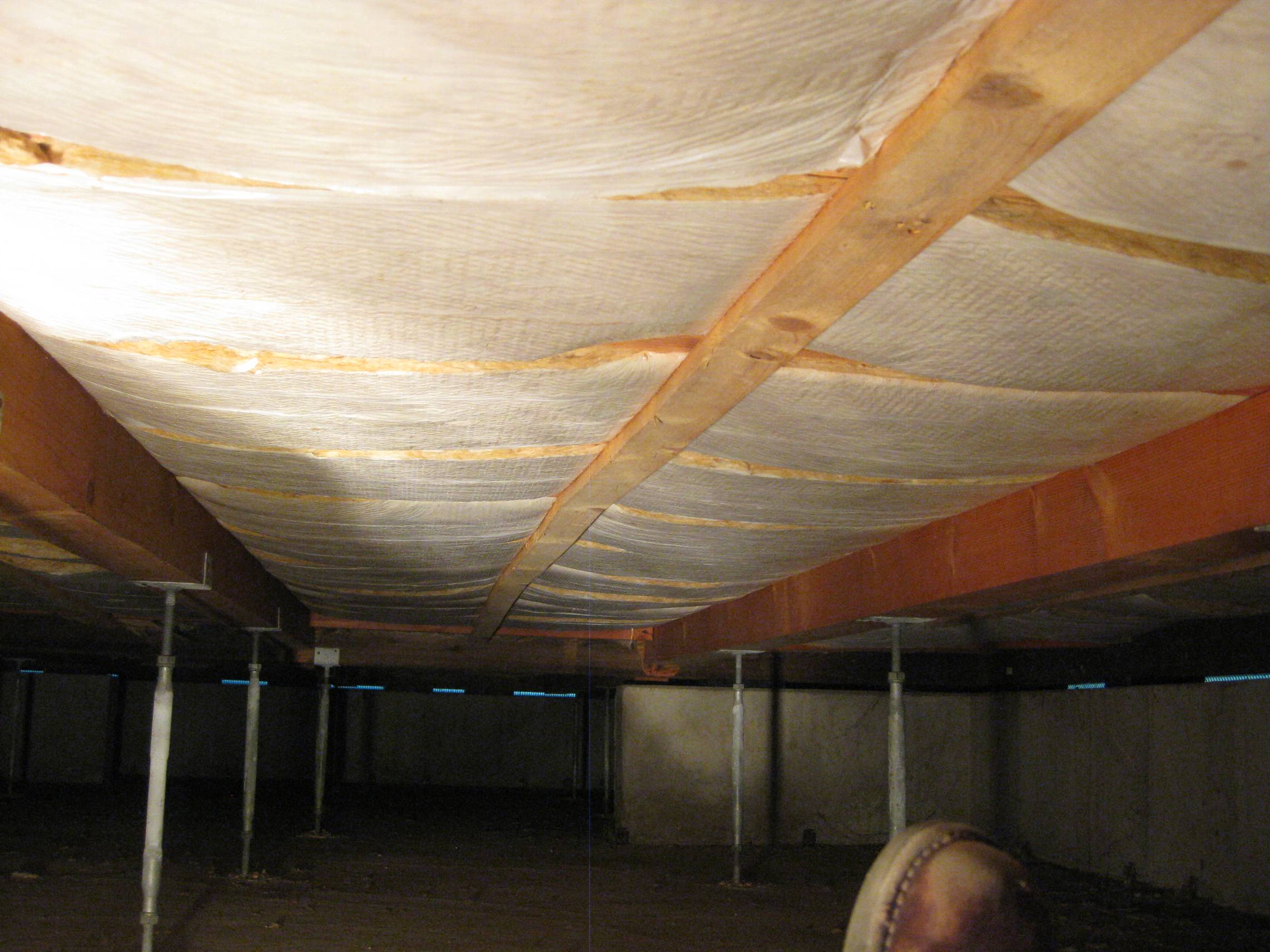 A 現状を確認。床鳴りの音から判断すると床下にある鋼製束の伸縮音であると思われます。