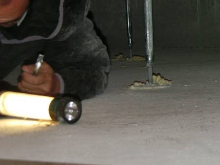 【床鳴り】2014年6月20日(金)お家の点検1年目(富山市N邸) 2015.03.06 Q 通ると「ポコッ」と音がする。 A 現状を確認。踏み込んで検査した結果、床下にある鋼製束の伸縮音であることが判明。 [玄関ホール] [LDK] 床下の鋼製束を増し締め(上方向)して現状を改善。木部が乾燥に伴って収縮することで、鋼製束と木部の間に隙間が発生、床上から体重がかかることで音が出てくるものと思われます。