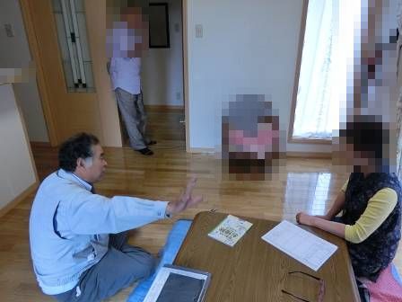 A 現状を確認。該当場所付近に体重をギュッギュッとかけて床鳴りの音を判断すると、床下にある鋼製束の伸縮音ではなく、床材の基材や床材同士が擦れるキシミでした。音が鳴らないように補修するには「床上から細い釘で穴を開けてボンド剤を注入」という方法を紹介。お客様との協議の結果、構造に影響が無いのだったらこのままの状態で良いとのことになりました。