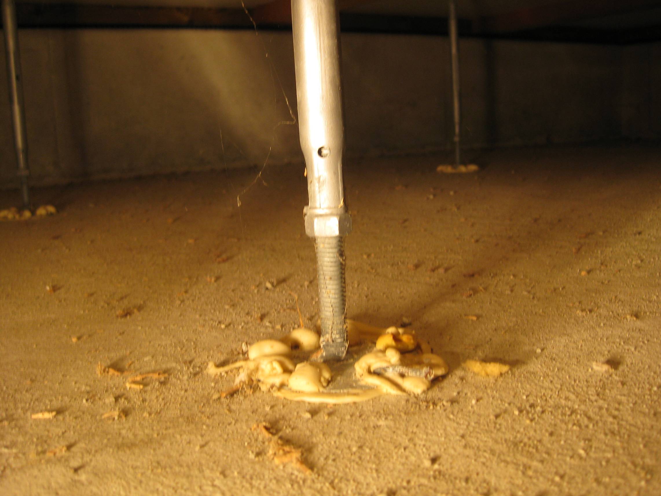 【床鳴り・キシミ】2014年5月17日(土)お家の点検5年目(滑川市O邸) 2014.06.19 Q 床鳴りがある。 A 現状を確認。LDKの床をキュッキュッと片足で踏み込んでみると床材がきしむ音だったので、床下にある鋼製束を増し締めする必要性は特にありませんでした。湿度変化等による床材の伸縮等によって起こり得る現象であり、構造上は特に問題ないことを説明し、お客様に理解して頂きました。 (下の画像は床下の鋼製束の様子です。キシミ現象とは関係ないですが・・・汗)