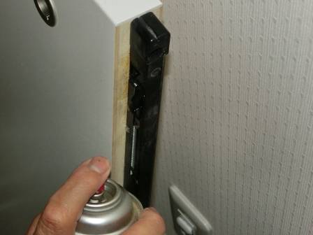 試しにシリコンスプレーを吹き付け(摩擦の軽減)して引き戸の開閉テストをしたのですが、改善されませんでした。