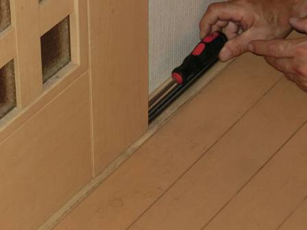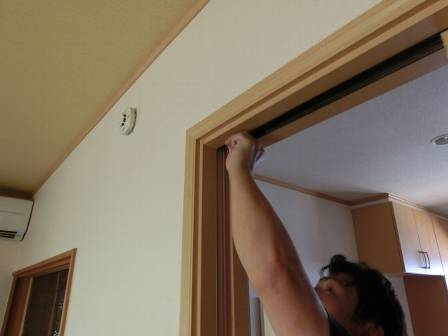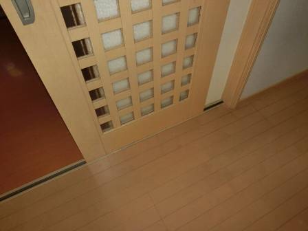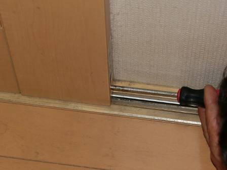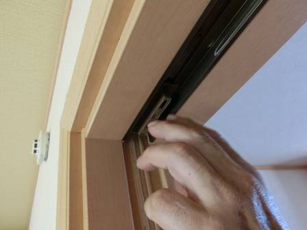 【引き戸の引っ掛かり】2014年7月31日(木)お家の点検10年目(高岡市福岡町I邸) 2015.03.06 Q 引き戸の開閉時に引っ掛かりがある。縦てりが合っていないからなのか? [LDK] 現状を確認。この引き戸はお客様宅の和室にある襖戸と違って傾き等を補正できる建具となっています。具体的には扉の側面の下側に引き戸の台車で「上下左右を調整できるネジ」があって、木部が湿度変化等によって伸縮する起こり得る現象に対してドライバーで手軽に補正できる仕組みになっています。 また、扉の桟(上部)には引き戸の閉まる強さ・衝撃(ブレーキング)を和らげるソフトクローザーが付いているので、段階的に閉まり方を調整できる仕組みも併せて紹介。お客様ご自身でもDIYで補正できることを知って頂く形になりました。