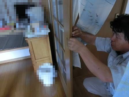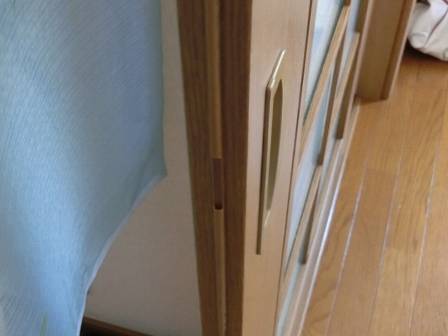 【引き戸の緩衝材(ゴムパッキン)の切れ】2014年9月18日(木)お家の点検10年目(高岡市T邸) 2015.03.07 Q 扉(引き戸)同士が召し合う部分のゴムが切れた。 A 現状を確認。お客様は以前に予備を購入して保管されていたそうですが、緩衝材(ゴムパッキン)の置き場所を忘れられたようです。 [LDK] 召し合わせ部分のゴムパッキンの状態。後日、メーカー在庫の有無を確認して発注(有償)することになりました。 [正面左側] [正面右側]