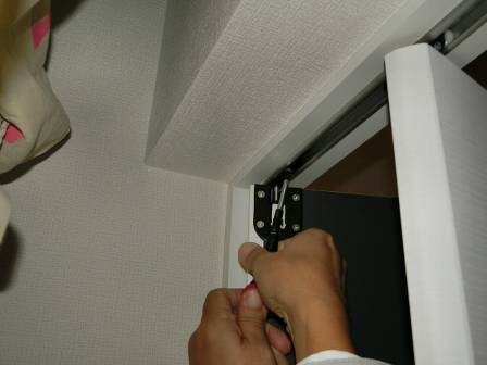 A 現状を確認。扉が固定するように上部レールのビスを増し締めします。