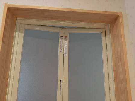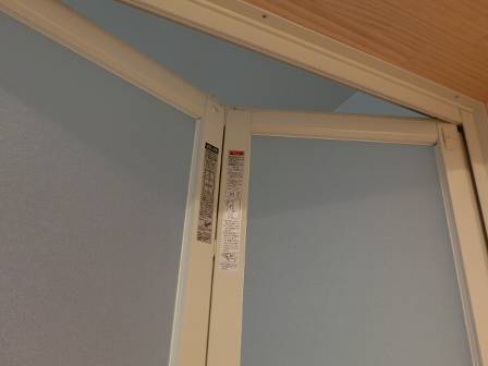 【折れ戸の開け方】2014年12月13日(土)お家の点検2年目(高岡市S邸) 2015.08.04 力任せに開けることもある浴室の折れ戸。腰の当たりに手を掛ける場所がありますが、谷(曲がる)の部分に片手を当てて押したほうが開けやすくなり、経年劣化等も緩和されると思われます。 [浴室]