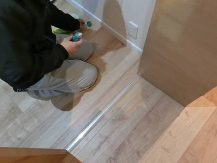 【折れ戸収納の開閉時の異音】2015年2月20日(金)お家の点検1年目(魚津市M邸) 2016.02.18 折れ戸収納の扉を開閉する際に異音が発生しているのを発見。 [2階収納庫] シリコンスプレーを吹き付けして擦れていた金属音?異音を解消しました。