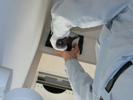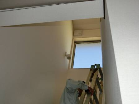 【排気口(換気扇)の掃除がやりにくい】2015年9月29日(火)お家の点検5年目(富山市八尾町K邸) 2016.02.20 Q 換気扇が手の届かない位置にあるので、長い脚立で排気口の掃除をして欲しい。 お客様からのご要望がありましたので、長い脚立を足場にして排気口(換気扇)の掃除をすることになりました。 [階段口] コードレス掃除機をお客様からお借りして溜まっているホコリを取り除きました。