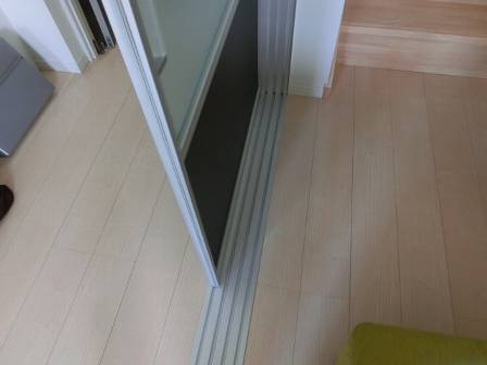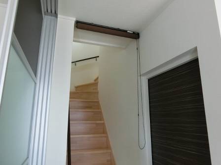 【暖房効率のアップ】2016年5月13日(金)お家の点検5年目(富山市I邸) 2016.12.27 お客様宅の暖房器具は蓄暖。階段口には2階からの冷気が下りる(1階の暖気が逃げる)のを防ぐロールカーテン、暖房効率を上げるスクリーン・パーテーション(リビングとDKを仕切る)があります。 [LDK]
