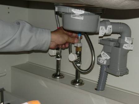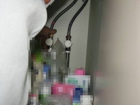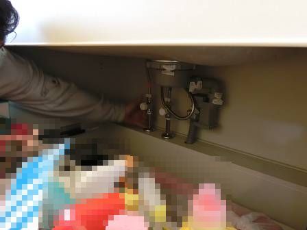 給排水管からの水漏れの有無を確認。左側がお湯、右側が水になっています。