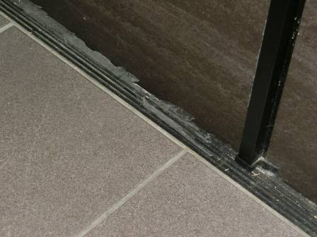 【沓摺り(くつずり)ゴムの剥がれ】2015年9月26日(土)お家の点検5年目(富山市I邸) 2016.02.20 Q ネコが外に出たがっていた時、知らず知らずのうちに敷居のゴムをツメで引っ掻いていた。隙間風や小さな虫が入ってくるかもしれないので取り替えて欲しい。 A 現状を確認。ドアを開けてみると引っ掛かれた跡がよく分かります。後日、メーカーに部材の有無を確認して取り替えることになりました。