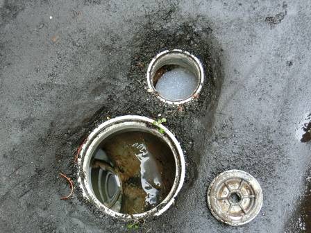 汚水枡の点検を実施。白い油脂等の溜まりはほとんどありませんでした。泡状の液体が溜まっていましたが、洗濯排水でしょうか・・・