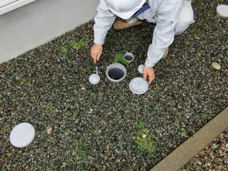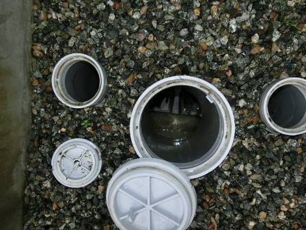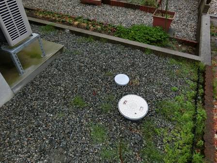雨水枡を検査。泥等の溜まりはほとんどなく、特に異常はありません。
