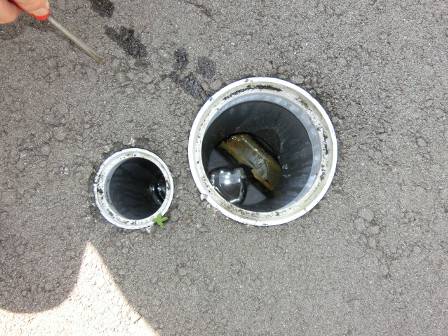 また、汚水枡の横にあるエアを出し入れする役目のキャップを取り出して、排水管内をスムーズに生活排水が流れる仕組みを紹介。通気管は排水時にエア(空気)をかますことで排水管内を円滑に流しやすくする機能があります。