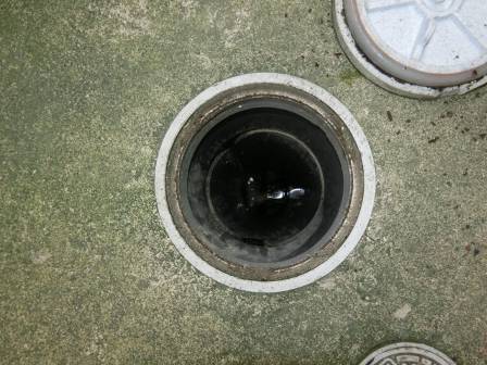 汚水枡の点検を実施。数箇所あるうちの幾つかに白い油脂等が少し溜まっているのを発見。